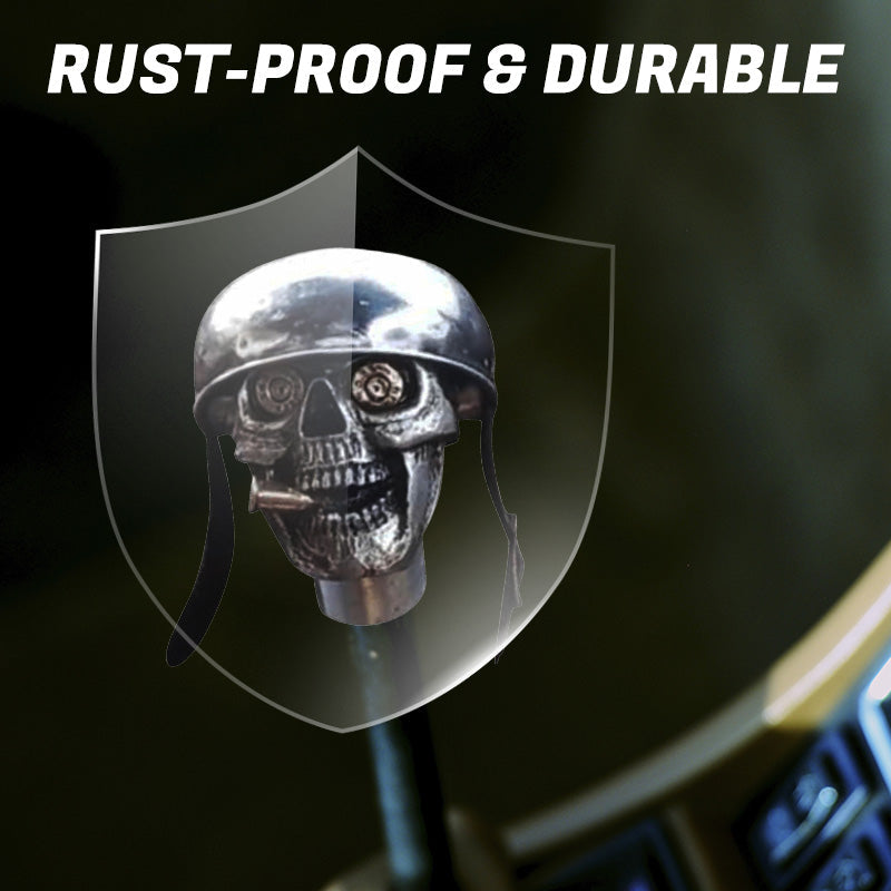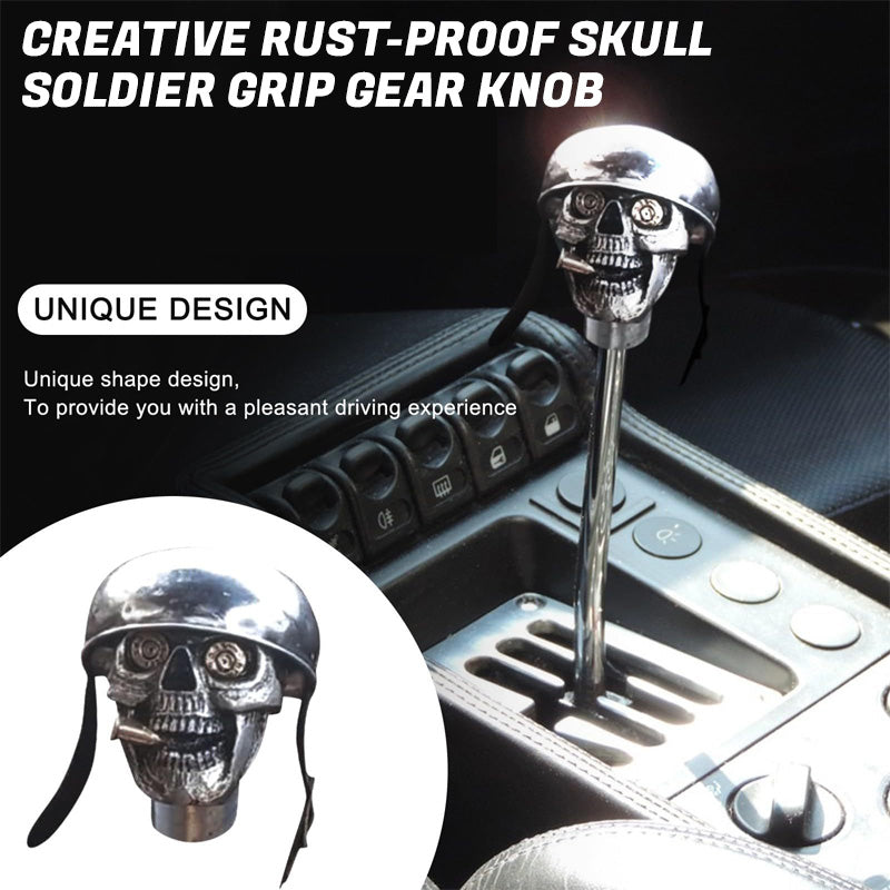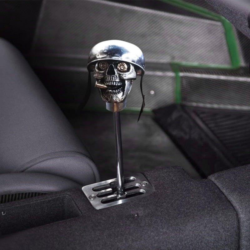 UNIK HODESKALLE-DESIGN: Girhåndtaket har en slående hodeskallesoldatdesign, noe som gjør det perfekt for dem som ønsker et dristig, kreativt og edgy preg på bilens interiør.