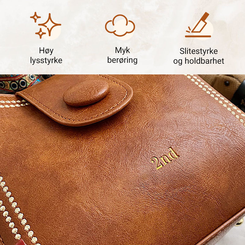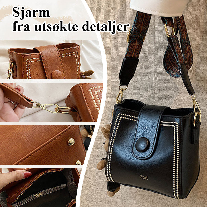 Ta et steg tilbake i tiden med vår vintage moteveske med justerbar bredere skulderreim. Denne vesken kombinerer vintagemotens tidløse sjarm med moderne funksjonalitet. Denne vesken er laget med stor sans for detaljer og er det perfekte tilbehøret til dine retroinspirerte antrekk. Enten du spaserer gjennom byen eller er på vei til en sosial sammenkomst, vil denne vesken løfte stilen din og holde orden på det du trenger. Med denne vintageinspirerte vesken får du en ny stil og vekker oppsikt.