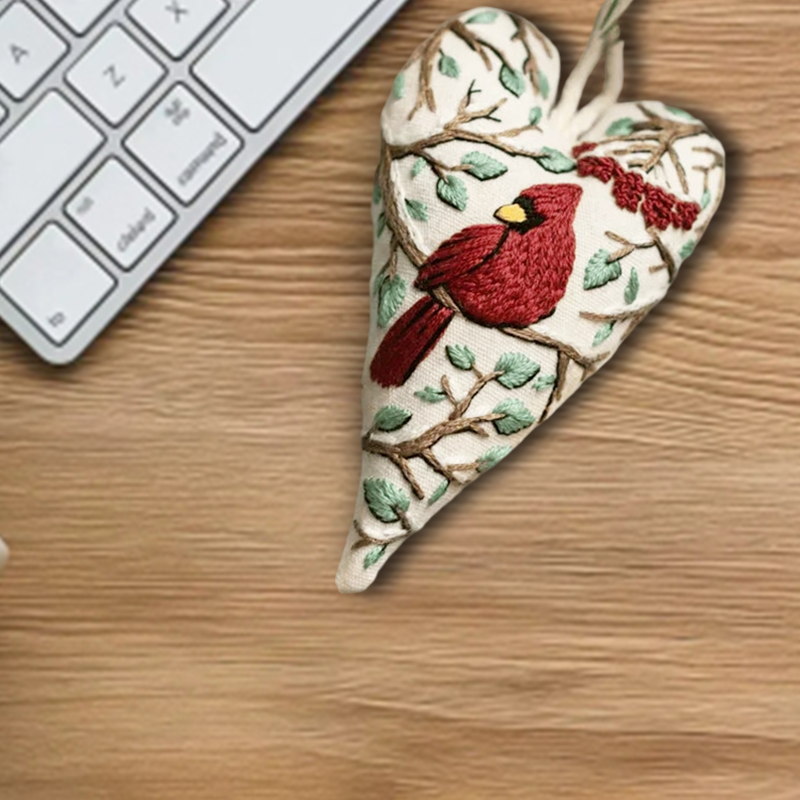 DIY hjerteformet håndbrodert julepynt/pyntesett