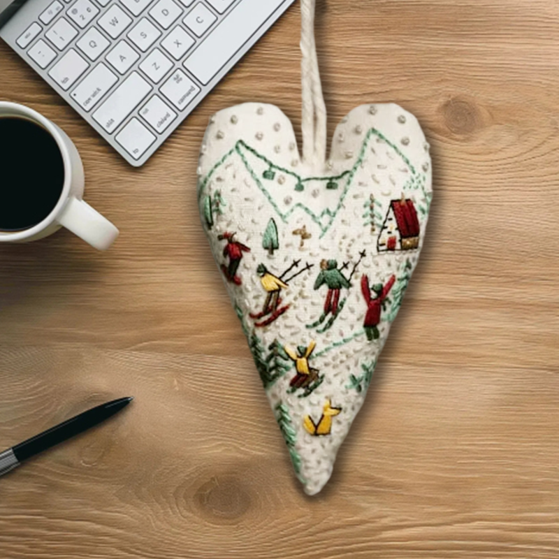 Er du på jakt etter en unik dekorasjon til høytiden? Dette hjerteformet håndbrodert julepynt/pyntesett er din nye bestevenn! Ta nål og tråd, og vær klar til å veve litt julemagiske øyeblikk inn i hjemmet ditt.