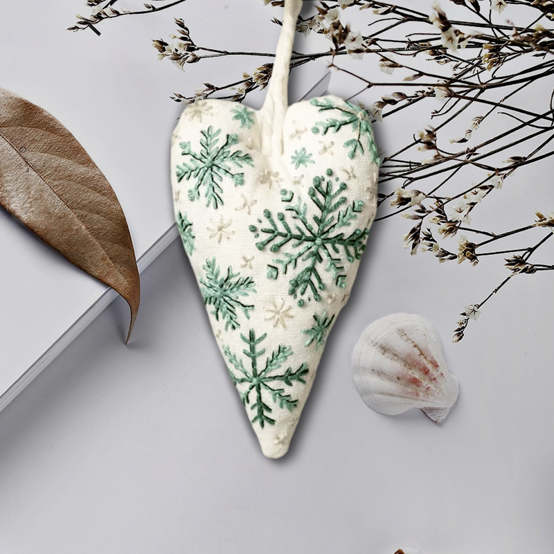 1 * DIY hjerteformet håndbrodert julepynt/pyntesett