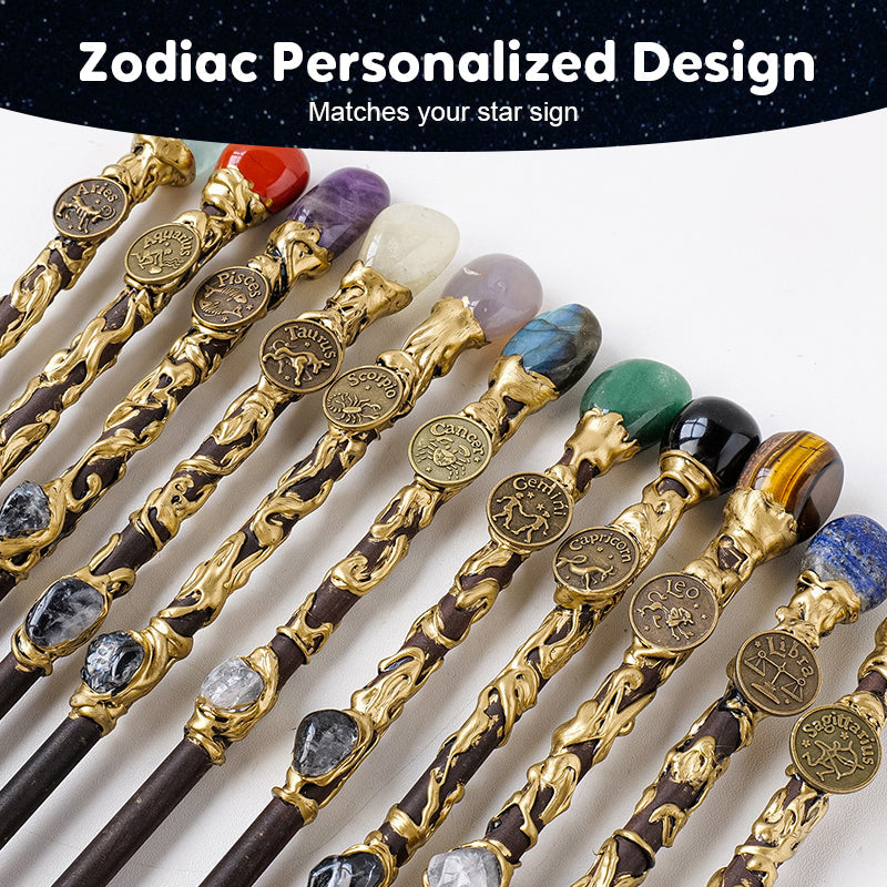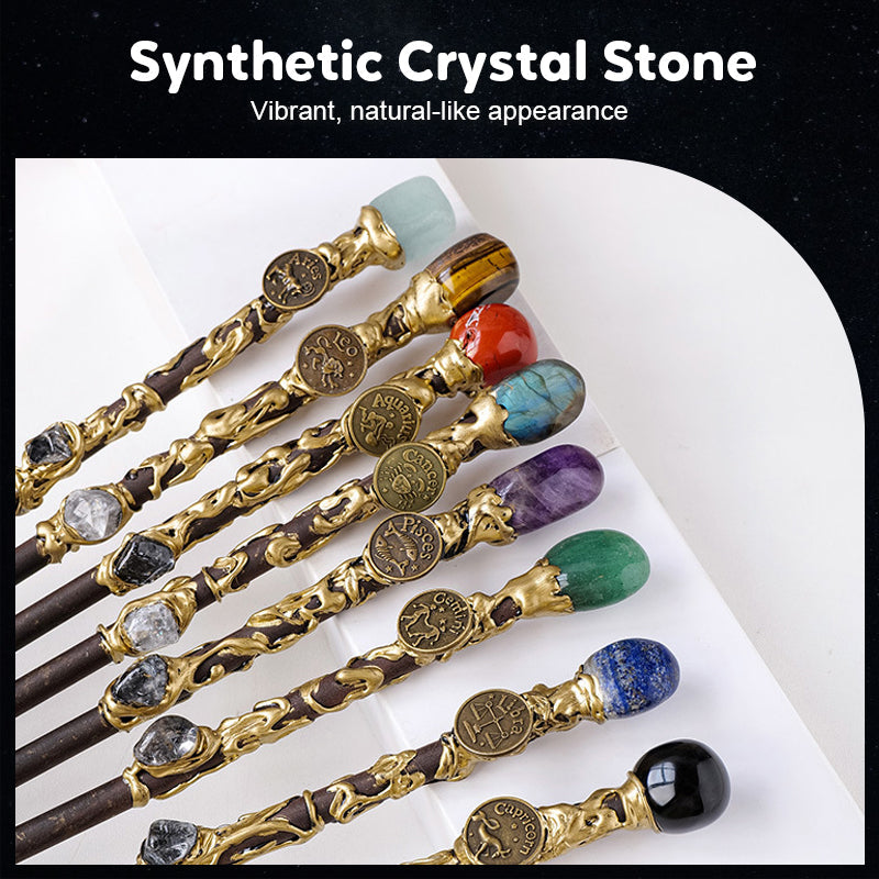 EKTE ENERGI FRA SYNTETISKE KRYSTALLSTEINER: Laget av høykvalitets syntetiske krystaller som ametyst og lapis lazuli. Hver stav har en levende krystallklynge som etterligner naturlig stein. Tilpasset stjernetegnene fungerer den som et symbolsk talisman som kombinerer skjønnhet og himmelsk sjarm.