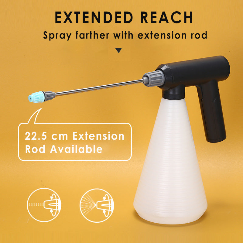ENKEL KONTROLL – ÉN-KNAPPS BETJENING: Vanning og rengjøring skal ikke føles som hardt arbeid. Trykk og hold inne i to sekunder for å starte, trykk én gang for å stoppe. Ingen kontinuerlig pumping, ingen slitne hender. Den stillegående motoren og det langvarige batteriet lar deg jobbe lenge uten hyppig opplading.